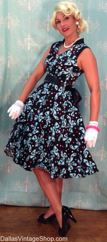 Dress yourself in 1950’s Susie Homemaker Attire. We have a huge selection of 1950’s Ladies Fashion Printed Day Dresses and Window Shopping Classic Outfits. Like something out of the Better Homes & Gardens Magazine from the 1950’s, this Prim and Proper Susie Homemaker Outfit is here waiting for you. You will find more great 50’s Costume Ideas than you could ever imagine. We have 50’s Hair Fashion Wigs, Day Gloves, 50’s Proper Jewelry, 50’s Period Shoes and even the right stockings to complete any 50’s Look you want. Nobody has more 50’s Attire in the Metroplex than we do. You will find Vintage Clothing, Retro Dresses and Theatrical Attire and all the Period Accessories at Dallas Vintage Shop.
