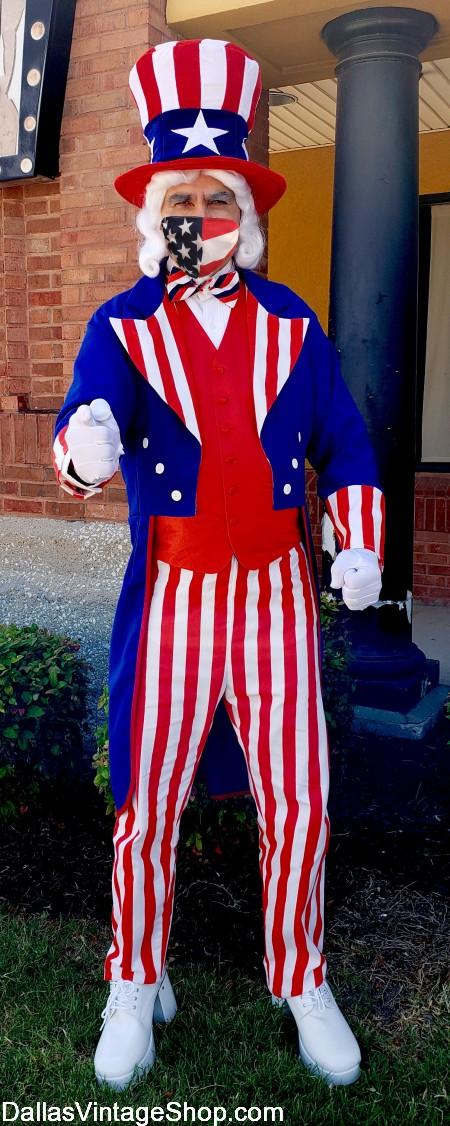 Local Costume Shop is designing and creating their own July 4th Cloth Face Masks with a flair. These Patriotic Themed Cloth Face Coverings are the perfect compliment to Social Distancing and Covid 19 Mitigation during the Independence Holiday. Check out our 4th of July Masks & Costume Categories Below:
