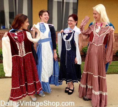 70’s Gunne Sax, Jessica McClintock Dresses for 70’s West Coast Fashions and 70’s Theme Parties, like the ones shown in the Dallas Vintage Shop Photo are abundant.