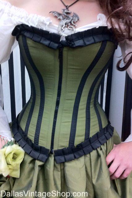 Beautiful corsets are waiting for you at the Dallas Vintage Shop, We’re always getting in new styles, various periods, diverse fabrics and fresh colors of corsets. If you need corsets for costuming, fashion, lingerie or for Renaissance festival garb, we are bound to have something you’ll like