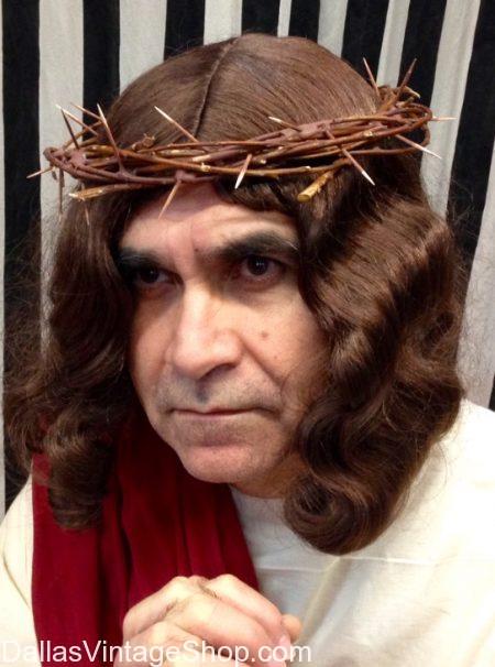 Crown of Thorns for Jesus Costume. We stock quality Crown of Thorns for Jesus Costumes, Realistic Jesus & Bible Character Wigs, Christmas Jesus Crown of Thorns & Wigs, Complete Bible Pageant Theatrical Cast Wardrobes or just the Bible Characters you need. We keep all Biblical Characters in stock at Dallas Vintage & Costume Shop, always. Christmas & Easter Plays as well as Nativity Christmas Scene Character Costumes come in Higher Quality, Economy and even Children’s Play Quality & Prices. Buy our best quality for the main characters and save money on the extras in your cast.