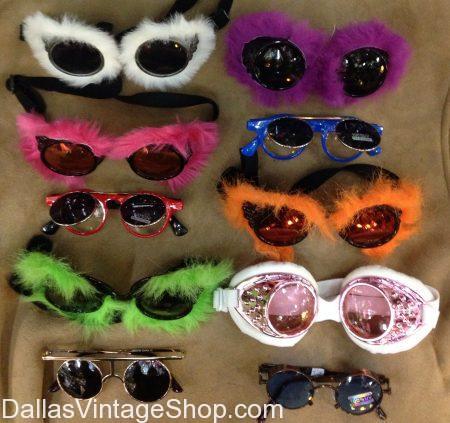 Colorful Fur Trimmed Aviator Goggles, Flip Up Lense Eyeglasses, Crazy Costume Eyeglasses, Burning Man Weird Costume Accessories, Burning Man Funky Goggles & Costume Accessories, Crazy Steampunk Aviator Goggles and Eyeglasses