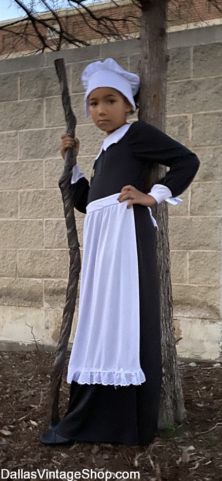 This Black History, Bridget ‘Biddy’ Mason, Kid’s Costume depicts her 1700 mile walk behind a wagon train, from Mississippi to Utah. As a slave, her duties were setting up and breaking down camp, driving the cattle, trail nurse & midwife, camp cook & tending the 3 children of her owner. Her owners later moved to California, a ‘free state,’ with her and there she petitioned for her freedom. She eventually became wealthy through real estate, organized the first A.M.E. Church and was a notorious philanthropist. There are many other Children’s Black History Month Outfits at Dallas Vintage Shop. Get all the Historical Costumes for Adults and Kid’s you could possibly need.