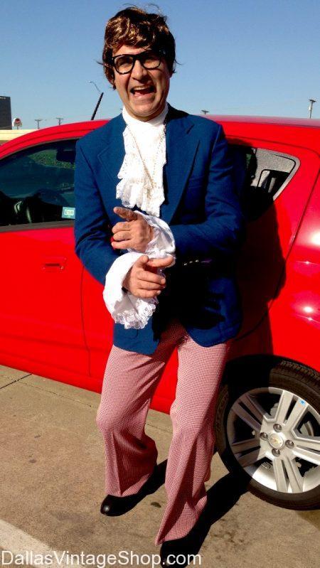 We have several of Austin Powers favorite Outfits from the Austin Powers Movies. ‘Groovy Baby, Yeah!’ We’ve got the glasses, wigs, ruffled shirts, zipper boots and everything you need to make your own favorite Austin Powers costume. Get the entire outfit or just the pieces you need.