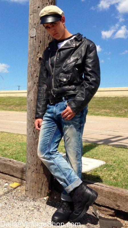Let us hook you up with an outfit that will demand attention. This Vintage Hollywood Celebrity Marlon Brando, ‘The Wild One’ Outfit is just one of billions of complete costumes we can assemble, on the spot for you, right now or anytime, all year round because of our huge inventory of any decade, any century, any character, any accessory collection of vintage attire, vintage knock-offs and quality costumes.