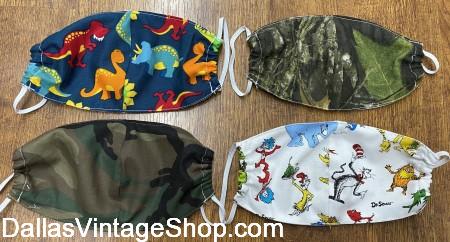 Children’s Face Coverings, like these Boy’s Camo, Real Tree, Dinosaur, Cat in the Hat, Dr. Seuss and other Children’s Themed Fabric Face Coverings are now for sale at Dallas Vintage Shop. Shipping & Curbside Services are available.