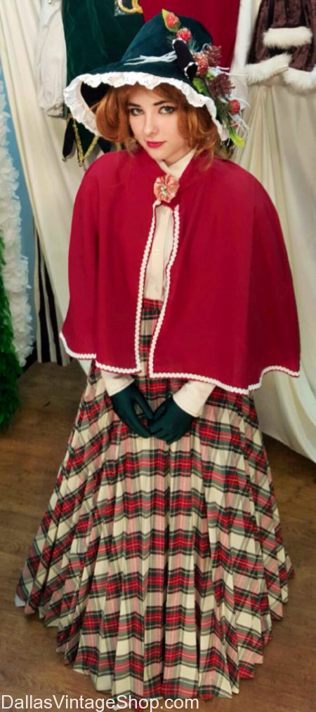 Holiday Carolers Costumes. We have Quality, Variety & Quantity when it comes to our Beautiful Carolers Costumes. At Dallas Vintage Shop you find Victorian Dresses that are perfect Ladies Christmas Carolers Outfits. Our Dickens Era Ladies & Men’s Attire, Dresses, Top Hats, Caplets & Frock Coats make excellent Holiday Christmas Strolling Carolers Attire. Get complete Carolers Outfits or wardrobes for an entire Vocal Group. Our Christmas Carolers Accessories are available to be selected to upgrade your existing Holiday Carolers Costumes.