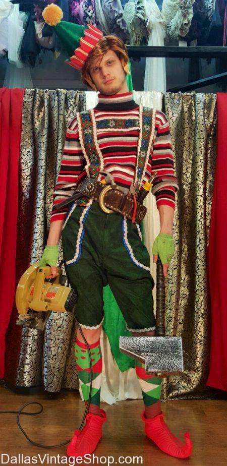 Hard Working Christmas Elf Costume, Manly Elf Dude Costume, Christmas Santa’s Workshop Elves Costume & Accessories Shop Dallas