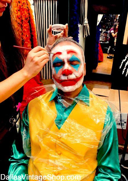 Costume Makeup for the Joker or any other Movie Characters, Theatrical, Horror or Halloween Costumes. We are open year round with Ben Nye, Graftobian, Mehron, Rubies and all other major Costume Makeup Suppliers at Dallas Vintage Shop.