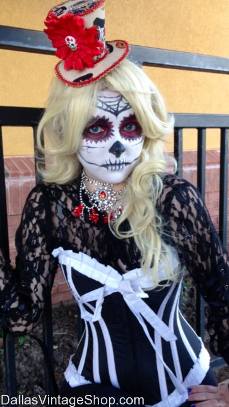 There is no place like Dallas Vintage Shop for Day of the Dead Costume Accessories & Masks. Find all the Dia de los Muertos Sugar Skull Masks, Day of the Dead Decorated Skull Masks for Men & Ladies & Day of the Dead Costume, Accessories you won’t find anywhere else. Get Goth Victorian Clothing, Wedding Bride Dresses & Veils, Excellent Dia de los Muertos Makeup, Goth Victorian Jewelry and Chokers, Mexican Day of the Dead Attire and more than you can imagine. We are open all year so shop early and beat the crowds.