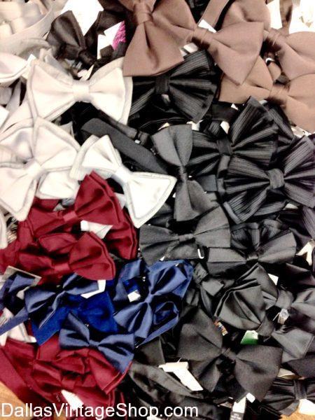 When it comes to 1920’s Suit Ties & Bow Ties and other Decades Clothing & Accessories,, nobody can beat us. You will find a large selection of Men’s 1920’s Solid Color Bow Ties & 1920’s Tuxedo Bow Ties & Formal Attire to match. We stock the Dallas Metroplex Area’s largest selection of Men’s Historical and Decade Era Black Tie & Vintage Style Tuxedo Bow Ties. Some of our 20’s Period Bow Ties and 20’s Fancy Black Tuxedo Bow Ties are plain or solid colors. We have more Styles of Men’s Bow Ties than any Store in the Dallas Area. You will find Men’s Vintage Tux Bow Ties, Men’s Historical Decades Attire and Bow Ties and any Historical Character Costume Bow Ties & Quality Theatrical Period Attire Bow Ties you can imagine. We have the Formal, Theatrical or Historical Complete Outfits or Costumes for each and every style or era of Bow Ties we have in stock.