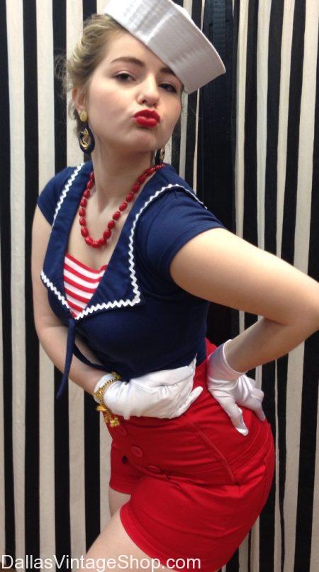 We have great WWII Era Attire Attire, 1940s Costume Ideas & 1940s WWII Pin Up Outfits. We have the wigs, military uniforms and accessories, makeup, high waist shorts, amazing pin up tops, seamed stockings, period jewelry and more.