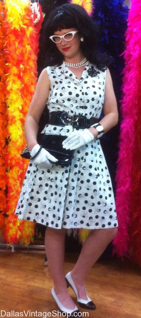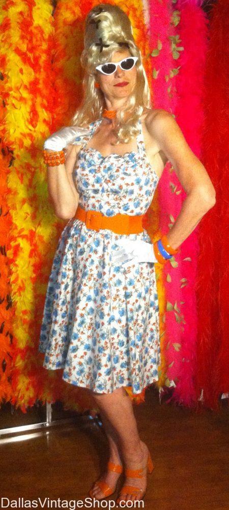 WARNING: Dallas Vintage Shop has true pedigree vintage attire. However, we also provide fancy theme party costumes for any decade, century or theme. We don’t claim to be the typical vintage boutique. Although we have enormous quantities of amazing vintage, we also provide theme party costumes with the, “Wow!” factor. Some people prefer vintage, but many prefer new. Therefore, we have quality replicas and costumes in vast quantities in a gigantic variety of styles with a large range of sizes. We have Ladies 50s-60s Fashions, Vintage 60s Ladies Attire, 1960s Mad Men Ladies Dresses, Ladies 50s-60s Cocktail Party Dresses and other great ideas.