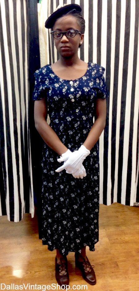 We have all the 1950’s Historical Attire, Vintage Clothing, School Project Costumes and Theatrical Costumes you could possibly need. This lovely Rosa Parks Costume is a Classic 1950’s Look. We have Complete Outfits for 50’s Iconic People, 50’s Historical Figures, 50’s Celebrities, 50’s Movie Stars, 50’s TV & Movie Characters, 50’s Broadway Hits & Theatrical Productions and all the 1950’s Period Correct Accessories you need to complete any 50’s Genre Outfit you choose. We have the largest & most comprehensive collection of 1950’s Attire in the Dallas Metroplex area and we are open all year round. Get Supreme Quality Outfits or Economy & Median Priced Costumes or just the accessories you need to fit your budget.