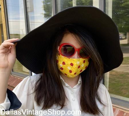 Designer Face Masks Collection Available. Find Face Masks in many unique designs, like this Lady Bug Designer Fabric Face Mask, shown here. Chose from a Large Selection of designer fabric Face Masks at Dallas Vintage Shop.