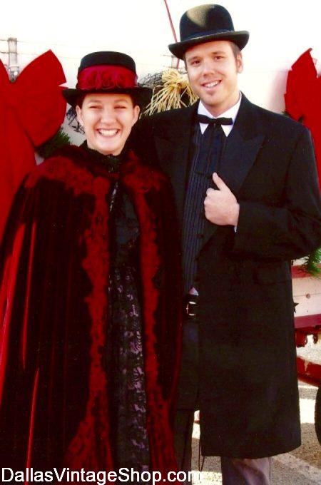 Dickens Era Couple: This Lovely Dickens on the Strand Couple got their Dickens Era Christmas Attire form the largest Victorian & Dickens Era Costume Shop in the Dallas, DFW Area & Texas. Dallas Vintage Shop has Unlimited Dickens Era Costume choices in stock all year round.