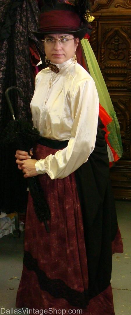 No matter what your costume needs are Dallas Vintage Shop will come through for you. Need Dickens Lady Townspersons Attire, Victorian Simple Ladies Attire or Dickens on the Strand Christmas Caroler Costume Ideas? We have you covered from head to toe including Victorian Hats, Victorian Jewelry, Victorian Era Eye Glasses & Monocles, Blouses, Skirts, Shoes, Wigs, Parasols, Brooches & Cameos and more.