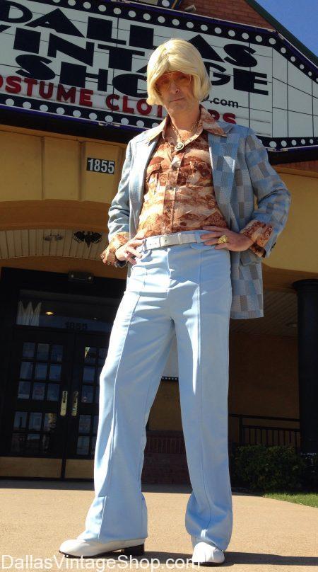 Check out this Disco Dad Costume for LAKEWOOD Elementary Auction Party. We have actual 70s Vintage Clothing for Theme Party Costumes. This Lakewood Elementary School Father found everything he needed for the LECPTA Fundraiser Auction “Friday Night Fever” Themed Event. We have true vintage attire or knock-off costumes in all sizes up to plus, 2x, 3x & even larger. You will not believe the Volume & Quality of Costumes & Costume Ideas. We have over 100,000, that’s One Hundred Thousand, 70s Disco Costumes, Vintage Clothing Articles, Shoes, Wigs, Mustaches, Jewelry like Male & Female Symbol Medallion Necklaces, All Signs of the Zodiac Medallion Necklaces, Disco Ball & Hoop Earrings, Peace Sign Belt Buckles & Rings, 70s long scarves, White Belts & White Zipper Boots for Men, Go-Go Boots in all colors of the rainbow with chain belts, earrings, Bracelet & Rings to match, Disco Glitter Platform Shoes for Men & Women, all the Aviator and Mod Glasses & Sunglasses from the 70s and more than you could possibly count in all sizes, in stock now & all year round. That’s just the 70s. We have every decade, every century & any historical theme, in stock, waiting for you discover it. Come put together the grooviest costume you ever imagined. A trip to Dallas Vintage Shop is worth the time and effort. Please allow a minimum of 1 hour to shop, discover, try on & assemble a costume with the ‘Wow” Factor.