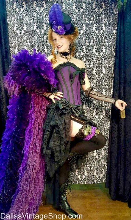 Find Unlimited Saloon Girl Garb, Costumes & Accessories like you’ll never find anywhere else. Complete Period Outfits or just the pieces you want like: Corsets, Corseted Dresses, Corseted High-Low Gowns, Fishnet Stockings, Shoes, Fancy Hats, Fascinators, Victorian Gothic Style Chokers & Earrings, Gloves Cloaks, Capes, Shirts & Blouses. We have Madams, ‘High Class’ Escorts. Dance Hall Darlings or Rough Painted Ladies Costumes. You’ll find High Society, Socialite & Commoners Attire. We even have Wild West Women, Cowgirls & Lady Outlaws Getups.