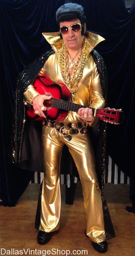 The King of Rock n’ Roll: Elvis Presley Deluxe Elvis Gold Jumpsuit Costume. We have all your favorite Rock n’ Roll Artist. We have a costume for that. We have flamboyant Rock Star Outfits for professional musicians, theatrical or theme party costume ideas.Get everything you need from head to toe or get just the wigs, bling or other accessories you need.