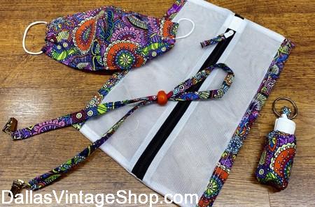 Designed and hand sewn in our USA, Dallas area shop, these Face Mask Accessories are beautiful, durable and stylish. Choose from a variety of designer or fun fabrics. All items in the kit are hand cut, assembled & sewn from the same unique print fabrics, right in our shop. Face Mask Kit includes: a comfortable Cloth Face Mask, with soft elastic ear bands, a matching Face Mask Wash Bag, a matching fabric Face Mask Lanyard with toggle for adjustable, but firm grip(you may easily compress toggle to allow Face Mask to hang loosely, when it is not in use) & a compact Key Chain Hand Sanitizer Bag with a refillable 1 oz. flip top bottle.
