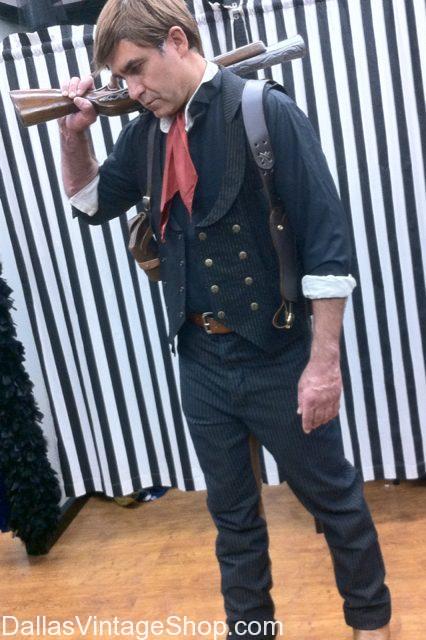 Steampunk Fans! Do not miss the huge inventory of Steampunk Attire waiting for you at Dallas Vintage Shop. This Wild Wild West movie Will Smith Steampunk costume is only a sample or the many mens Steampunk suits, weapons, leather hats, shoes & all the Accessories you need.