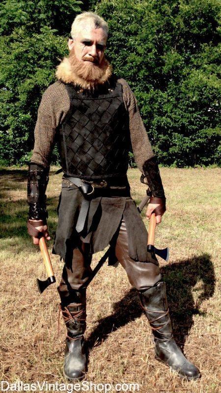 Take a look at this Floki, ‘Vikings’ Series Supreme Quality Outfit. No Costume Shops in Dallas or North Texas have the quantity, quality and diversity of Dallas Vintage Shop when it comes to Great Costumes and Costume Ideas. We have all of the ‘Vikings’ Series Characters Costumes in stock and we are open all year round. We have Viking Attire, Viking Quality Garb, Viking Theatrical Costumes and Viking Weapons, Wigs, Makeup, Vambraces Jewelry, and other Viking Accessories you have never thought of. Viking Era Character Costumes is only one category of Medieval, Primitive or Fantasy Characters Outfits which you will find in abundance here. Get Complete Costumes & every Imaginable Accessory for Any Period, Any Century, Any Decade and Any Theme all in one place.