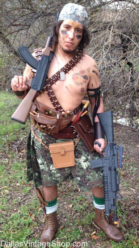 Modern Kilted Rambo Costume. We have military attire in traditional camo or digital camo patterns. Need complete Digital Camo Military Outfits or Digital Camo Kilts. We have some amazing Costume Ideas for Halloween, Paintball or just because.