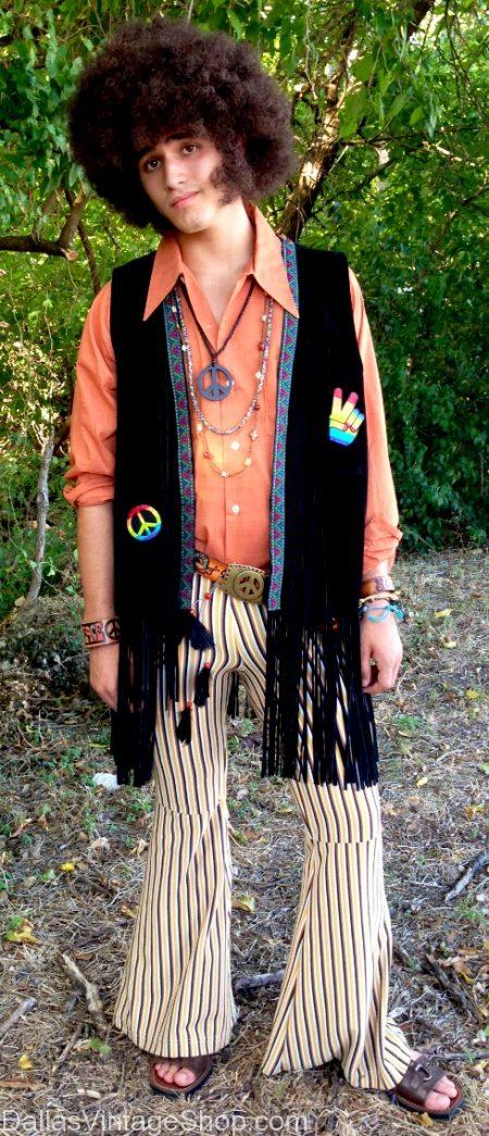 Men’s 60’s Hippie Dude Outfits, Hippie Wigs, Afros, Peace Necklace, Hippie Marijuana Leaf Necklace Clothing Shop, Psychedelic Print Butterfly Collar Shirt, Hippie Leather Pants, Hippie Leather Suede Fringe Vest and Hippie Men’s Bracelets. This is only the beginning of the Far Out, Psychedelic and Groovy Dudes Threads and Accessories we have.