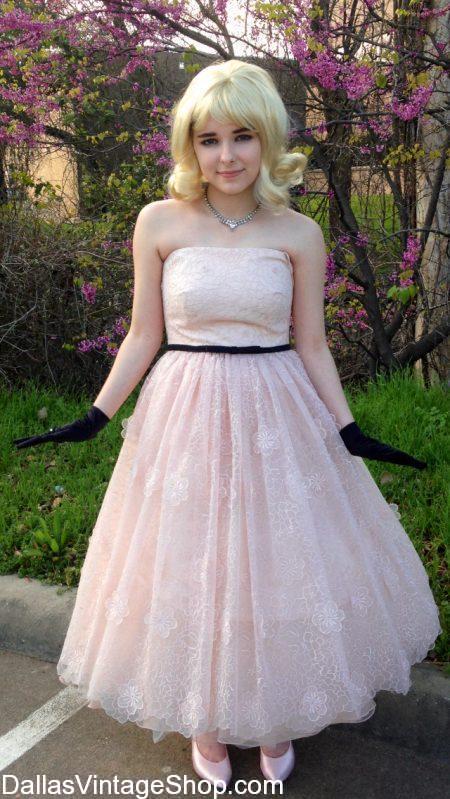 Prom Season at Dallas Vintage Shop never ends. The ridiculously large collection of Prom Attire, Prom Ball Gowns and Period Formal Dresses work for many types of Theme Parties, for Masquerade Balls, for Theatrical Costumes, for Gala Events happening throughout the year, for Tea Parties and for Formal and Sunday Dress Up Events. You will never find anywhere else that sells the Variety of Prom Dresses and all the Accessories and Accoutrements you need, all in one place and all year round.