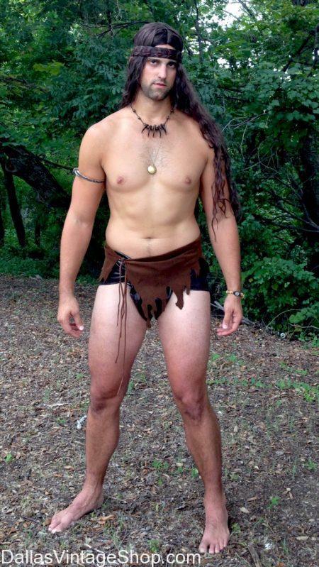 This Native American Indian Warrior Loincloth & Codpiece Attire is basic to many different outfits like Tarzan, cavemen, African tribal men, Burning Man, Medieval savages and more. This is nice enough to wear as outerwear or as under garments like Conan the Barbarian, Leonidas of the 300, Spartacus, Roman Gladiators and many more. We have tons of leather & fur clothing, cloaks, capes, vests, pants, jewelry, head pieces, arm bracers, leg & ankle wraps and the list is unlimited.