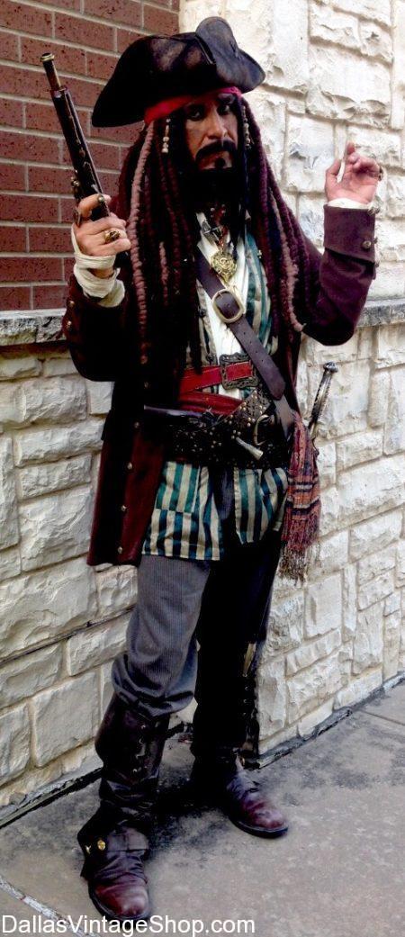 We have your favorite versions of Jack Sparrow, Pirates of the Caribbean Costumes. This Johnny Depp Costume is only one Pirates of the Caribbean Movie Characters we can help you create. What other Johnny Depp Characters do you like? We have them all. We have Complete Jack Sparrow or other Johnny Depp Costumes in stock. You just have to come in and get the complete costumes or just the pieces you need like the Jack Sparrow Wig, Head Scarf and Tricorn or the Makeup you need. We have everything you can imagine in stock.