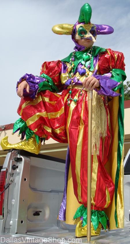 Need a Mardi-Gras, Masquerade, Medieval, or Renaissance Jester costume? We have a large selection of Jester costumes with choices of dozens of styles of jester hats, masks, jester shoe covers, tights of multi colors, checker-board, patterns, etc. Come create your own version of a jester. Add metallic capes, crowns, giant Mardi-Gras beads, funky jester hats, etc. Make a peasant style jester, kings court jester, town crier jester or a pimped out jester by adding accessories and clothing like pimp bling, boas, robes, pimp hats, tail coats, gold or silver lumea suits, jumpsuits, shirts, pants, blouses, etc. We have loads of other ideas.