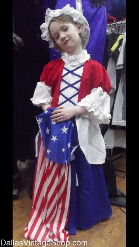 Find all the 4th of July Children’s Costumes for History Schoolo Projects or for Parade participation or for any reason. We have Adult and Child July 4th Bessie Ross Patriotic & Colonial Attire, In fact, we have any 4th of July Historical Character Attire or Costumes you can imagine.
