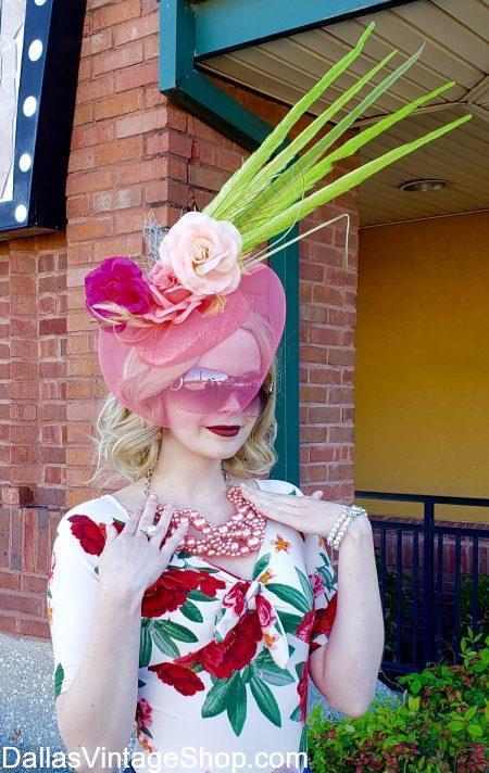 Best Shop for Fascinators for Tea Parties at the Kentucky Derby or anywhere is Dallas Vintage Shop. We are famous for our hat collection, we have many, many thousands. Fascinators & Kentucky Derby Hats are one of our specialties. When we can’t find enough High Fashion Derby Day Styles, we just create our own or customize the ones you choose. We’ll make it match any outfit perfectly.