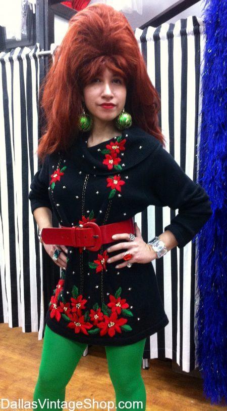 LADIES UGLY CHRISTMAS SWEATERS: You will find a Huge Selection of Creative, Hilarious, Festive, Vintage, Decorated, Lighted, Diverse, Outrageous and One-of-a-kind Ugly Christmas Sweaters at Dallas Vintage Shop. CLICK TO SEE MORE: Christmas Sweaters.