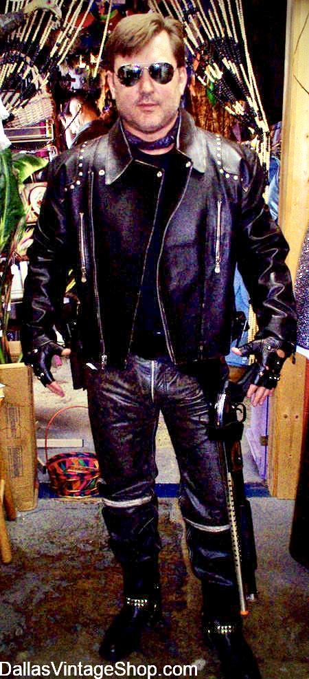Leather Men’s Costumes: Biker Jackets & Jeans, Futuristic Cops, Cosplay..