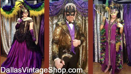 Some typical Mardi Gras Gala Attire: Dallas Vintage Shop.