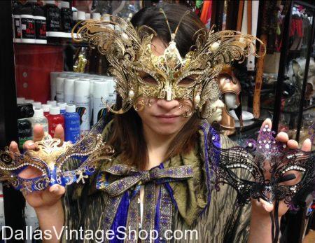 Get your Mardi Gras Costumes & Masquerade Masks at Dallas Vintage Shop. We have many quality Masquerade Ball Fancy Masks including these Elaborate Laser Cut Masquerade Masks, Venetian Masks, Cloaks and Jewelry for completing your Gala Ball Outfit or Mardi Gras Costume.