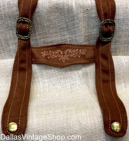These Oktoberfest Lederhosen Suspenders represent only a minute fraction of the Oktoberfest Men’s Traditional Costumes & Accessories in stock for German International Festivals, German Historical & German Theatrical Events. Get Bavarian, Austrian, Tyrolean, Alpine, and other Oktoberfest Classic Folk and Festival Costumes. Find all the Oktoberfest Men’s Hats, Oktoberfest Shirts, Men’s Tall Manly Men Socks and all the Accessories to compliment your Oktoberfest Outfit. We have the largest Oktoberfest Costume Collection in the Dallas, DFW and North Texas area. We are open and well stocked all year round. If you need Quality Oktoberfest Garb, Theatrical German Historical Attire or even more Realistic German Costumes we have it. We are the One Stop Oktoberfest Costume Shop with the Largest and most Diverse Collection of Oktoberfest and German Attire anywhere. You will never see so many Oktoberfest Costume Options than you will find at Dallas Vintage Shop.