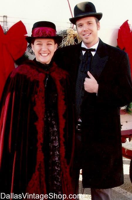 We have ladies Victorian hats and fascinators, ladies corsets, ladies Victorian Shoes and Boots and everything imaginable for Victorian Old West ladies clothing and also men’s Victorian Old West costumes and accessories, look like this Victorian Old West Town Baron & Baroness or however you chose at Dallas Vintage Shop!