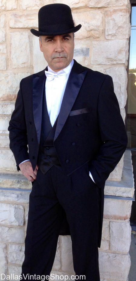 Get Period Tailcoats for Butler Formal Tailcoats & Proper Attire, Theatrical Period Tailcoats, 1920’s Period Tailcoats, Titanic Era Tailcoats, Vintage Tailcoats, 1910’s Historical Characters Tailcoats, Bowler Hats, Top Hats, White Formal Gloves & Canes from Dallas Vintage Shop. We are open all year round.