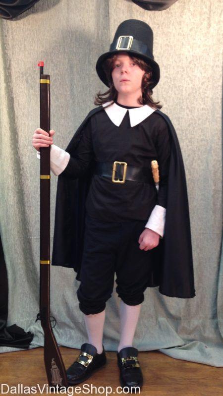 Pilgrim Boy Costume. We have all the Puritan Pilgrim Costumes and Accessories you need. You will find School Project Pilgrim Boys & Pilgrim Girls, Historical Reenactment Pilgrim Men & Ladies, Thanksgiving Day Parade & Fun Run Pilgrim Costumes and lots of extra Pilgrim Props to complete your outfit.