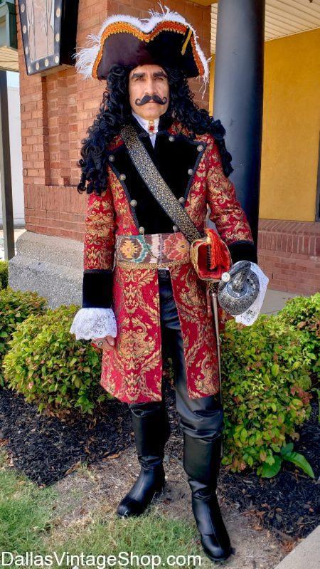 PIRATES: Supreme Quality PIRATE CAPTAIN COSTUMES; ‘Hook,’ Dustin Hoffman, Jack Sparrow, Captain Morgan, Pirates of Penzance, Black Sails and other Iconic Pirates Costumes in Stock, Best Ever Pirate Costumes from Dallas Vintage Shop. SEE MORE: Pirate Men. SEE: Pirate Ladies. SEE ALSO: Pirate Weapons. SEE: Pirate Costumes.
