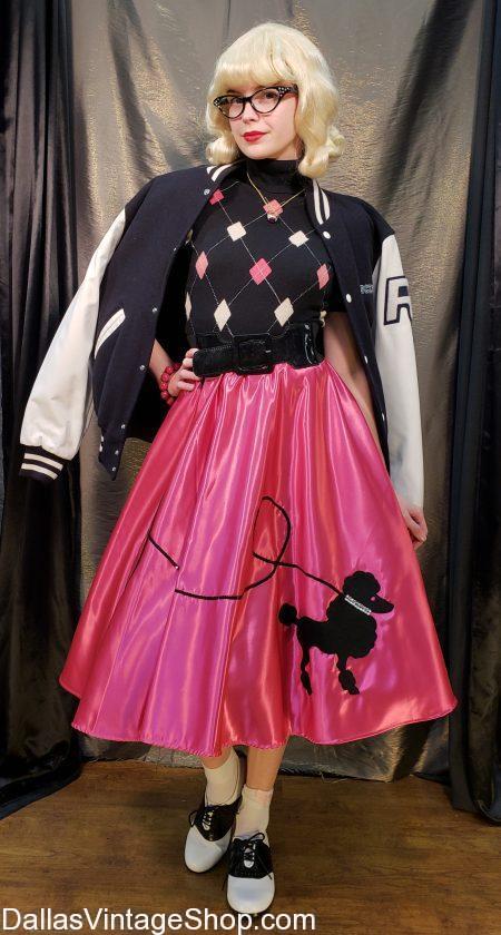 Get Poodle Skirts worthy of the Sock Hop Queen. We have Dallas’ largest collection of Poodle Skirts and Poodle Skirt Complete Outfits.