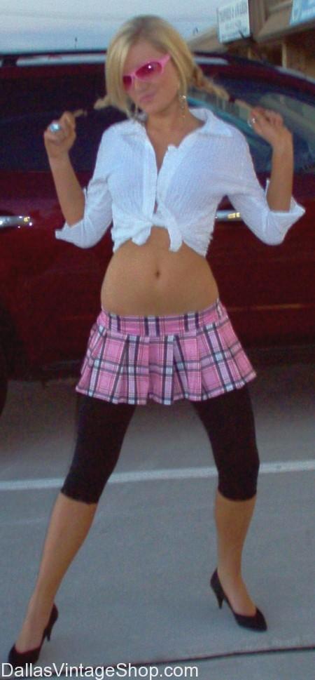 Here’s a cute costume idea for your next 80s or 90s Theme Party. We have Preppy School Girl , Preppy Mini Skirts, Sexy Tops and all the sunglasses and other accessories you need.