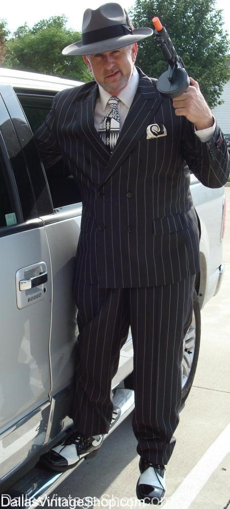 Rockwall Customers know that Dallas Vintage Shop is the Open All Year, One Stop Costume Shop with Supreme Quality Historical and Movie Character Outfits like this Deluxe John Dillinger, Gangster Outfit. All you need for this Johnny Depp Outfit includes this Gangster Pinstripe Suit, Quality Fedora, Art Deco Tie and Black & White Gangster Shoes. This is just one of tens of thousands of Costumes you can easily put together here and we are open all year.