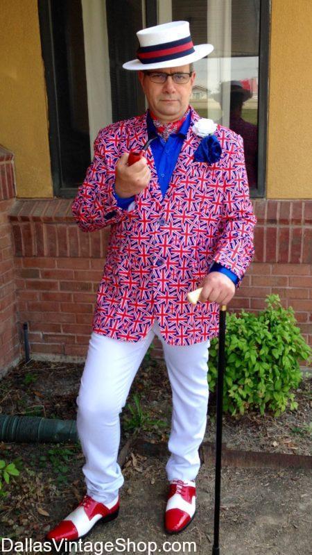 Here is one Royal Wedding Celebration Enthusiast wearing his Royal Wedding Hat & Humorous British Attire from Dallas Vintage Shop. We are the Royal Wedding Hats you need. If you want Whimsical Royal Wedding Hats and Outfits then we have them in stock for you. We also have more Serious Royal Wedding Hats for more distinguished gentlemen. Our Royal Hat collection for Ladies or Gents is the largest in the Metroplex.
