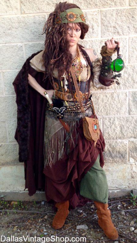 This is one version of a Romani Mystical Gypsy Shaman Costume or possibly a Traveling Caravan Gypsy Outfit. Here are some of the categories of Gypsy Outfits we are able to provide complete costumes, various clothing pieces or just accessories: ALL TYPES OF GYPSY COSTUMES: Romani Gypsies, Mystical Gypsies, Shaman Gypsies, Traveling Caravan Gypsies, Fortune Telling Gypsies, Carny Gypsies, Renaissance Gypsies, Forest Gypsies, Renaissance Garb, Mystical Fantasy Ladies Skirts, Blouses, Shawls, Pouches, Weapons, Scarborough & Texas Ren Fest Gypsies, Int’l Gypsies and more. Our vast supply or garb, gear & gadgets is unlimited. Find mystical, magical amulets, bracelets, earrings, crystal balls, poison rings, potion bottle necklaces, head gear, hair accessories and more than you can imagine are waiting for you. You will also want to check out other Costume Categories on this Website: Fantasy Costumes, Renaissance Costumes, Burning Man Attire, Tribal Costumes, Celtic Attire, Warrior Women, Dystopian and more..