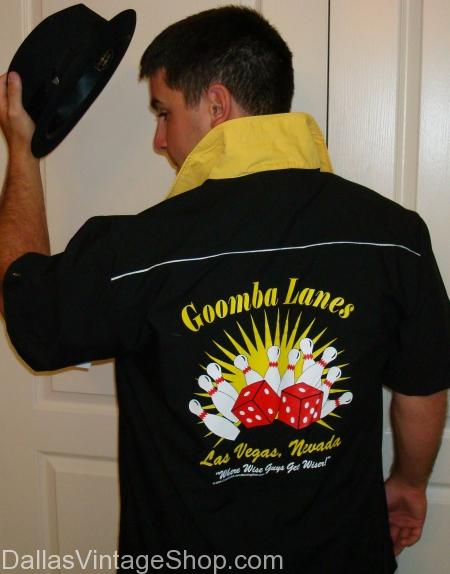 1950’s Bowling Shirt Goomba Lanes, 1950’s Bowling Shirt Goomba Lanes, Vintage Style Bowling Shirts, 50s Vegas Bowling Shirts, 50s Gangster on Vacation Costume